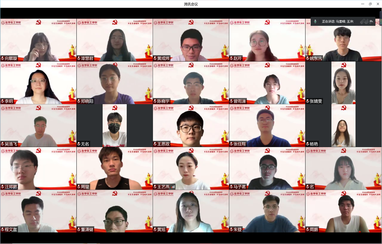 最后,吴映强为毕业生党员开展“不负青春韶华,不负时代责任”远航教育主题党课。他结合习近平总书记在庆祝中国共青团成立100周年大会上的重要讲话,号召毕业生党员以国家、时代责任为己任,将自己的命运与时代命运相连,在推动国家发展的过程中实现个人价值。同时向同学们分享了四位化院优秀校友徐光宪、高小霞、徐名材、蔡力宏等为祖国建设而不断努力奋进的故事,勉励大家传承和发扬“霞光精神”,怀揣远大理想,发挥专业优势,贡献应有的力量。此外,吴老师也结合疫情号召各位党员同志用实际行动充分展现抗疫担当,要坚定理想信念,提高政治站位,在大上海保卫战中冲锋在前,有所作为。最后,吴老师向全体毕业生党员提出要求和期望,希望大家在今后能够志存高远、锐意进取、达观向上,传承和发扬好“霞光精神”,把个人命运与国家命运和民族前途紧密联系在一起,为祖国和社会的发展贡献自己的力量。