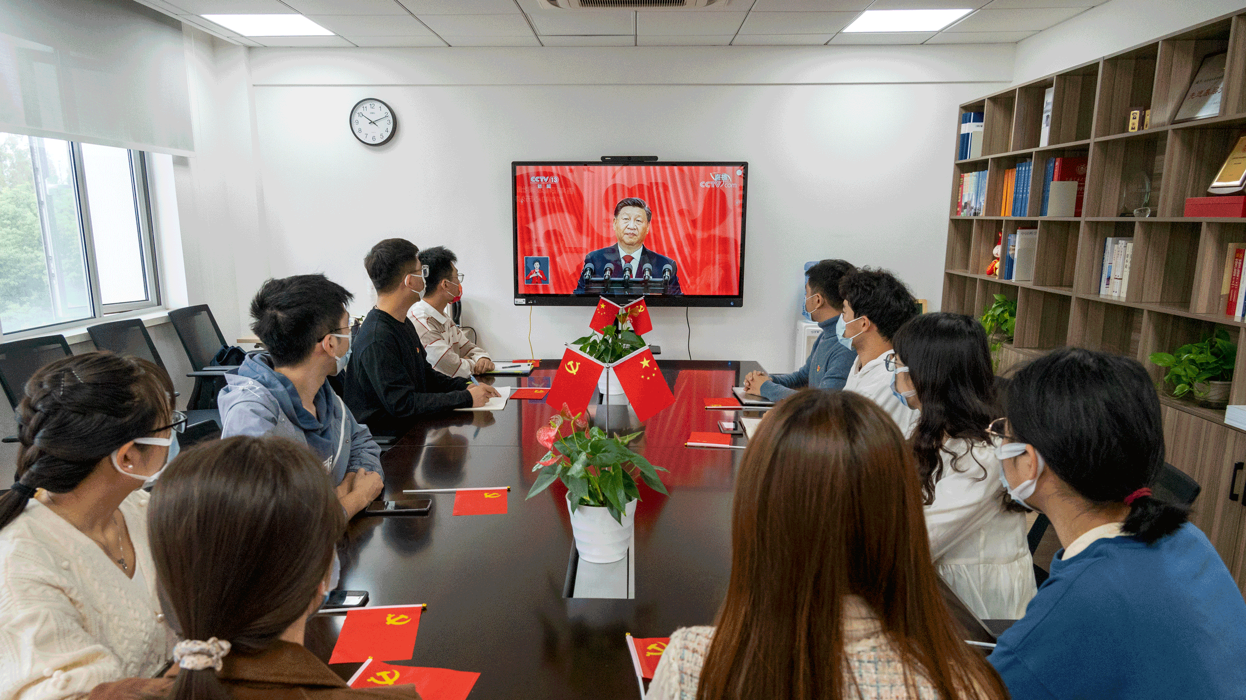 中国共产党第二十次全国代表大会于10月16日上午在人民大会堂隆重开幕。羞羞漫画 领导班子成员、办学骨干代表、学生代表集中观看了开幕式直播,认真聆听习近平总书记代表第十九届中央委员会向党的二十大所作的报告。其他师生通过多种方式自行收看直播,共同见证历史性时刻。