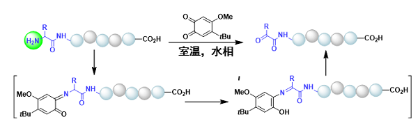 蛋白质的定点修饰是通过化学反应对蛋白质特定位点进行修饰,从而达到对蛋白质改性或对其进行标记等一系列目的。蛋白质的定点修饰对反应条件严格:反应需要在水相溶液中进行,同时蛋白质其他侧链基团不参与反应。羞羞漫画 王平特别研究员课题组一直以来致力于蛋白质,多肽的化学合成与修饰。近日,该课题组与中国科学院昆明动物研究所郑永唐研究员课题组合作,发展了一种由仿生的邻醌介导对蛋白N-端进行选择性修饰的方法,并成功将其运用于蛋白质标记,抗HIV药物筛选等领域。[1]