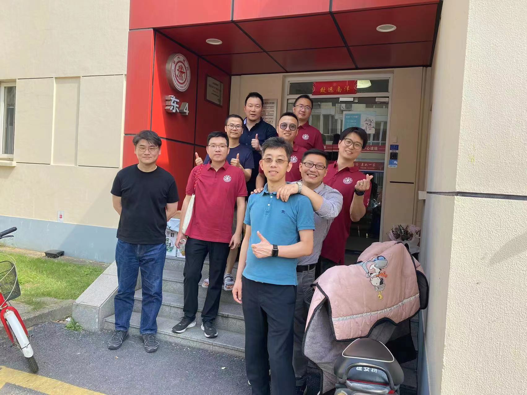 活动前,校友汇聚霞光楼门口,与自己的老师、同学握手拥抱、合影留念。