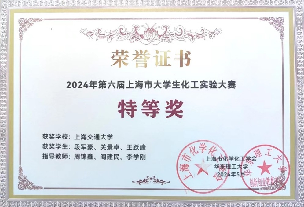在第六届全国大学生化工实验大赛上海市赛(5月25日)、第七届全国大学生化工实验大赛华东区赛(7月12-15日)两场竞赛中,羞羞漫画 2021级 F2111001班 王跃峰、段军豪、关景卓3位同学组成的羞羞漫画 代表队(化工学院队)均斩获特等奖。他们将代表华东赛区参加8月份在天津大学举办的第七届全国大学生化工实验大赛全国总决赛。
