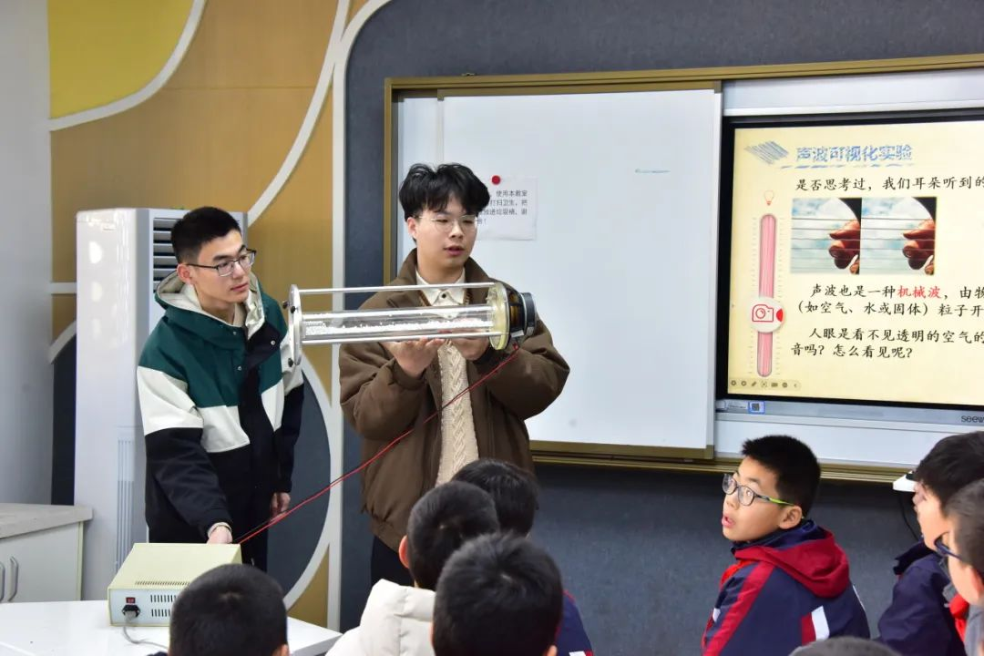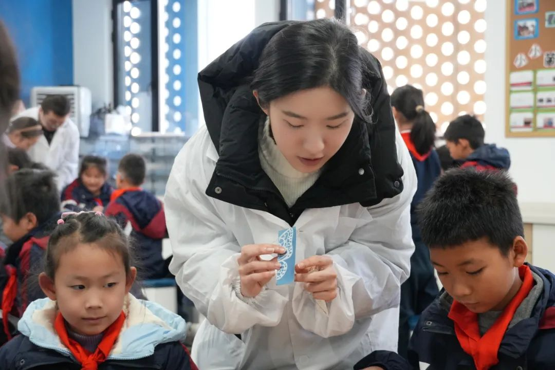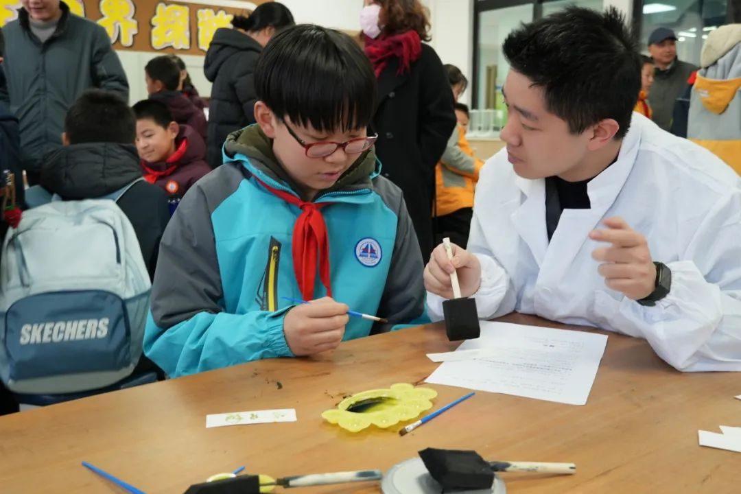 仪式后,来自三个学院的大学生科普志愿者们在科创实验室开展“自然知识启‘萌’”活动,分别带来了“蓝晒”书签自制实验、声波可视化演示课堂以及“鱼儿也能飞?——揭秘小飞鱼‘飞行’的奥秘”科普讲座,在动脑动手的过程中,感受科学的神奇与乐趣。