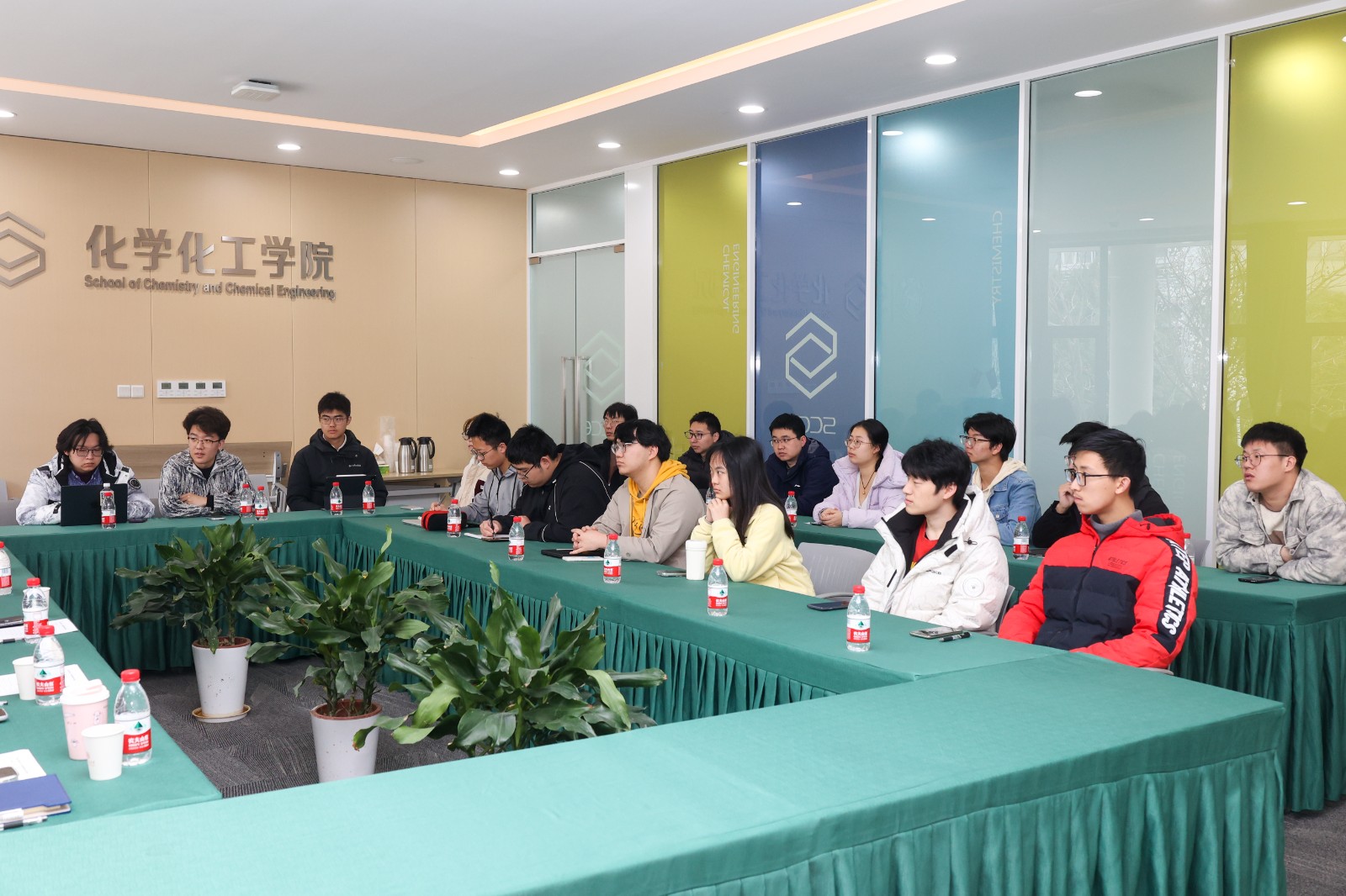 会上,学生代表们围绕时事热点、个人成长、学业发展、校园生活、生涯规划及意见建议等多个方面畅所欲言,包括如何将人工智能与化学学科研究相结合、跨学科交叉研究的前景与发展、针对低年级本科生专业认同的提升方法等。同时也就科研能力提升、心理辅导与职业规划、基础设施改善等方面提出了建议。硕士生陈睿镓建议开设人工智能辅助化学研究的讲座;硕士生陈欣宇表达了目前就业压力大的现状,希望能选修与所学专业相匹配的英语课程,提高英文面试能力;本科生高凌瀚、赵吉祥等同学则对课程设置和教材改革提出了见解,如更新化工原理教材、增加去企业参观走访的实践类课程、优化课程排课时间等。