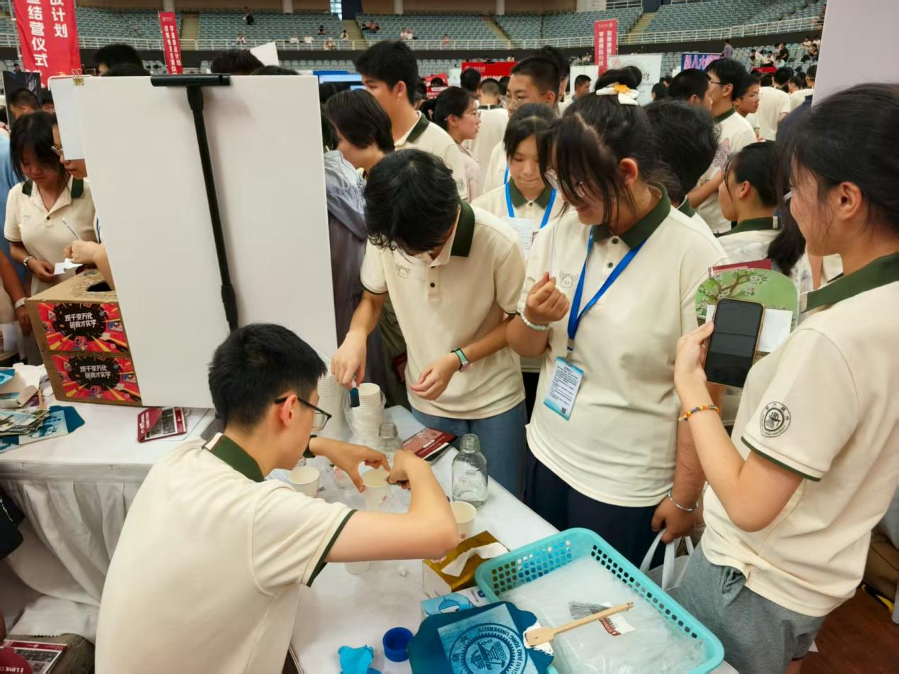 在学森挑战营的探究实验环节,营员们近距离感受了化学的奇妙。学院特意设计了蓝晒艺化、提神醒脑哪家强、靛蓝翠染以及解压神器的前世今生等四个精彩的探索实验,以新颖、有趣的方式呈现科学原理,激发了同学们对科学的好奇心和探索欲,让学员们亲手实践、观察和思考,感受化学力量的神奇与魅力,同时也体会科学技术与艺术、传统文化的完美结合。
