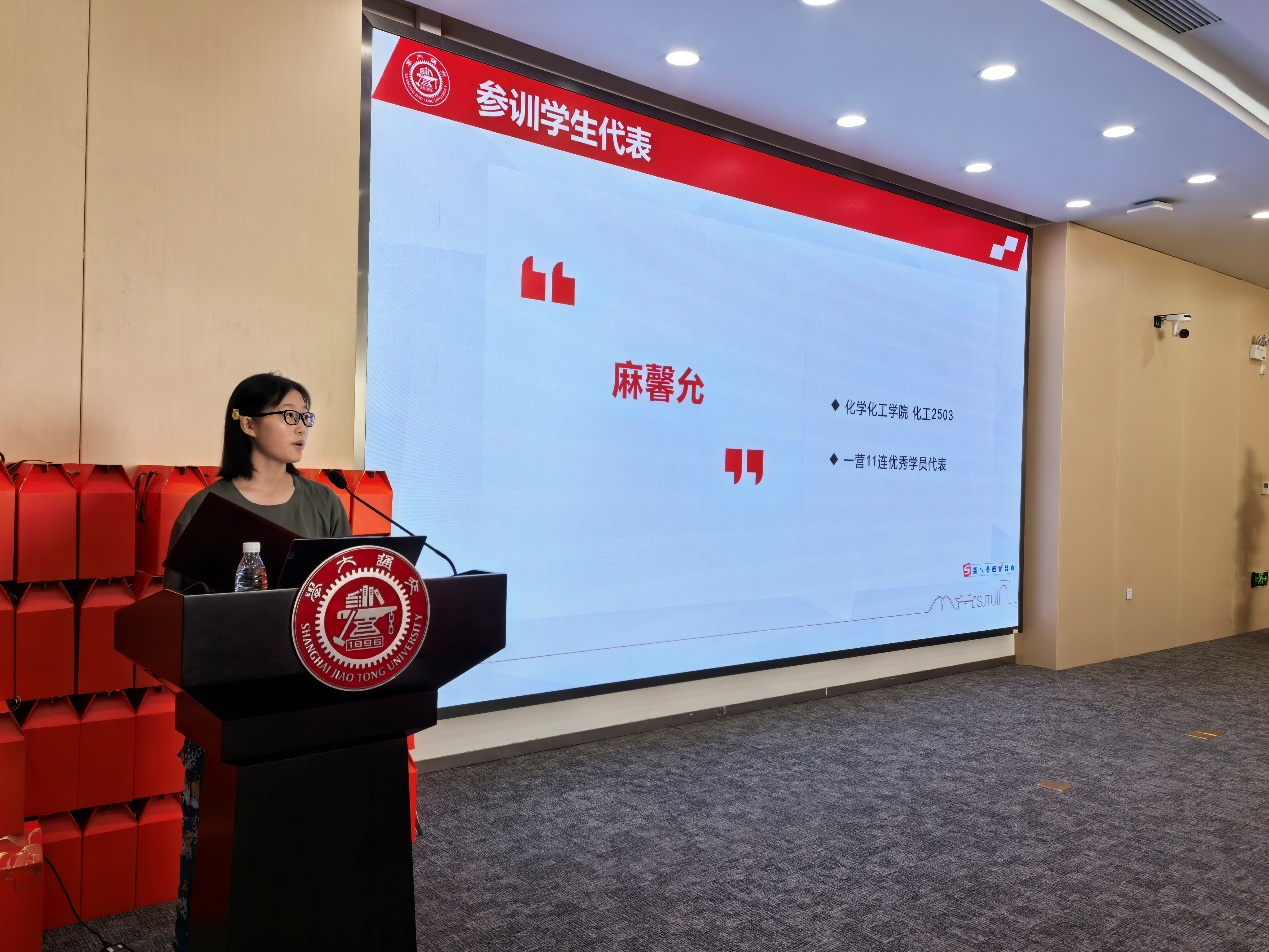 11连学员麻馨允和7连小班长王星鉴作为参训学生代表分享了军训感悟。麻馨允通过烈日军姿、十五公里拉练等经历,强调了突破自我、团队协作及交大化学人严谨坚韧的精神传承。王星鉴则以化学术语生动比喻,阐明军训是意志淬炼、集体“共振”的过程,倡导将纪律基石与高效执行力融入未来挑战,完美呈现最终的“产物”。