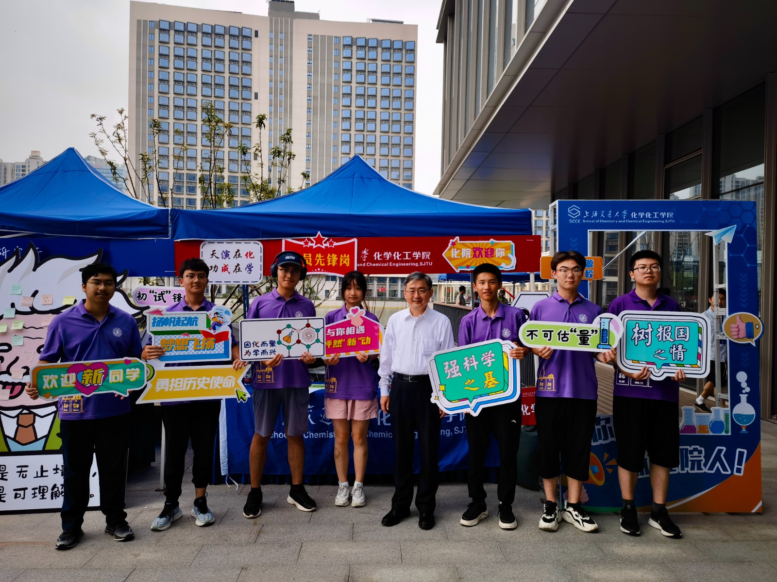 吴映强和姜学松共同为新生代表送上校徽与学院纪念礼物。校徽象征着交大的精神传承,学院纪念礼物承载着对新生的殷切期许。