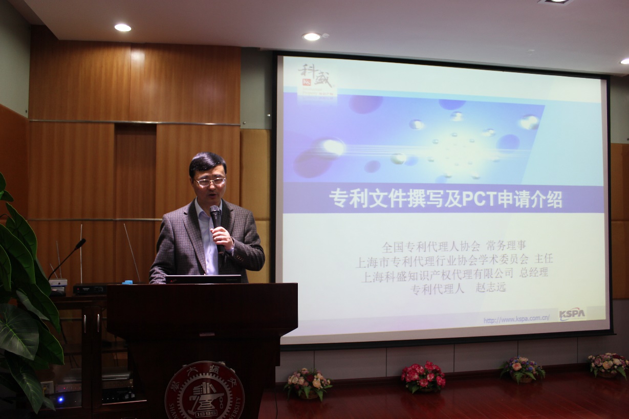 首先,汤维刚向与会的老师同学们介绍今天讲座的演讲嘉宾。他说,赵志远老师从事专利代理工作二十余年,有丰富的从业经验。2016年成功入选国家知识产权专家库专家。希望通过讲座形式,各位老师同学能够与赵志远老师多交流与沟通。使得专利申请成为科研工作的有力工具。