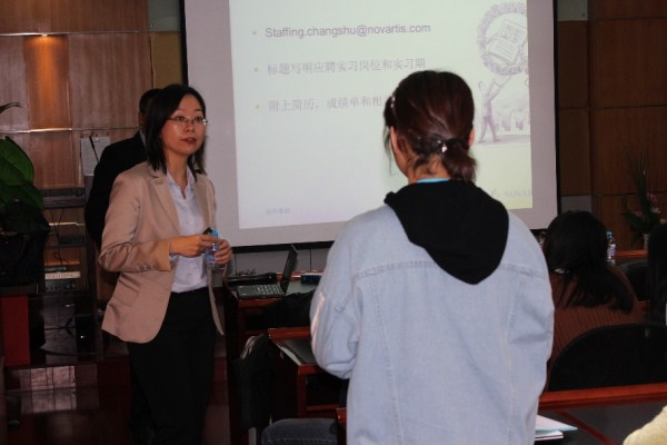 宣讲会上,张志明博士(Dr. Chiming Cheung),人力资源部魏星月女士向与会的广大同学介绍了诺华公司的企业研发产品,市场规模,羞羞漫画,个人职业发展规划等。