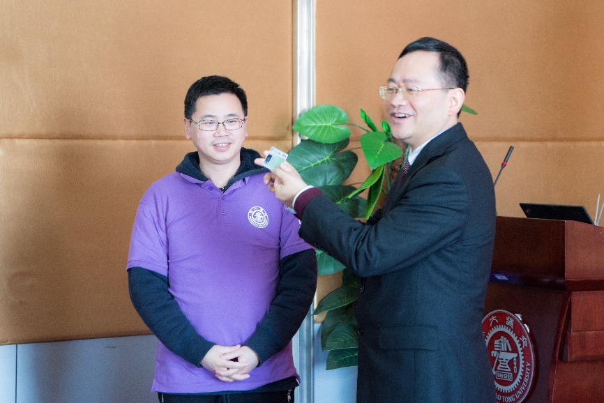 图:朱新远院长赠送校友纪念版校园卡