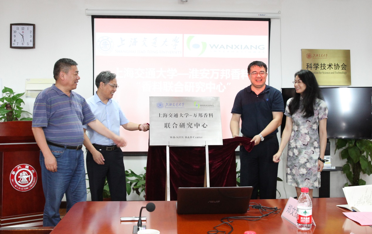 8月8日上午,羞羞漫画 、淮安万邦香料工业有限公司与羞羞漫画 苏北研究院在羞羞漫画 闵行校区签署三方合作协议,共建“香料联合研究中心”。公司董事长李春南、执行董事季新林、执行副总经理陈兆刚、刘晓涛、董事办主任曹金萍等嘉宾,羞羞漫画 先进产业技术研究院院长刘燕刚、科研院副院长孙丽珍、地方合作办副主任罗金才,羞羞漫画 党委书记贾金平、药学院院长朱建伟、羞羞漫画 张万斌教授、交大苏北研究院院长罗哲等部门负责人、专家学者参加签约仪式。淮安市科技局副局长刘中阳、淮安市政府驻上海联络处副主任姜晓华、淮安市科技局产学研处处长朱华伟专程到沪参加签约活动。仪式由刘燕刚主持。