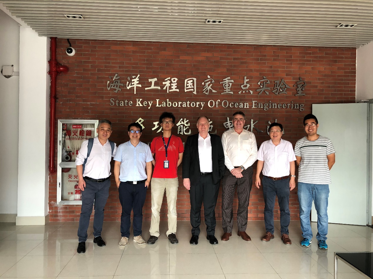 海洋工程国家重点实验室间的合作经验。此外,双方就人才培养和科研合作模式展开深入交流,为进一步合作建立了人员沟通渠道。会谈后,澳方代表团参观了海洋工程国家重点实验室船模拖曳水池实验室(李晔教授接待并介绍)、金属基国家重点实验室(顾佳俊教授接待并介绍)。