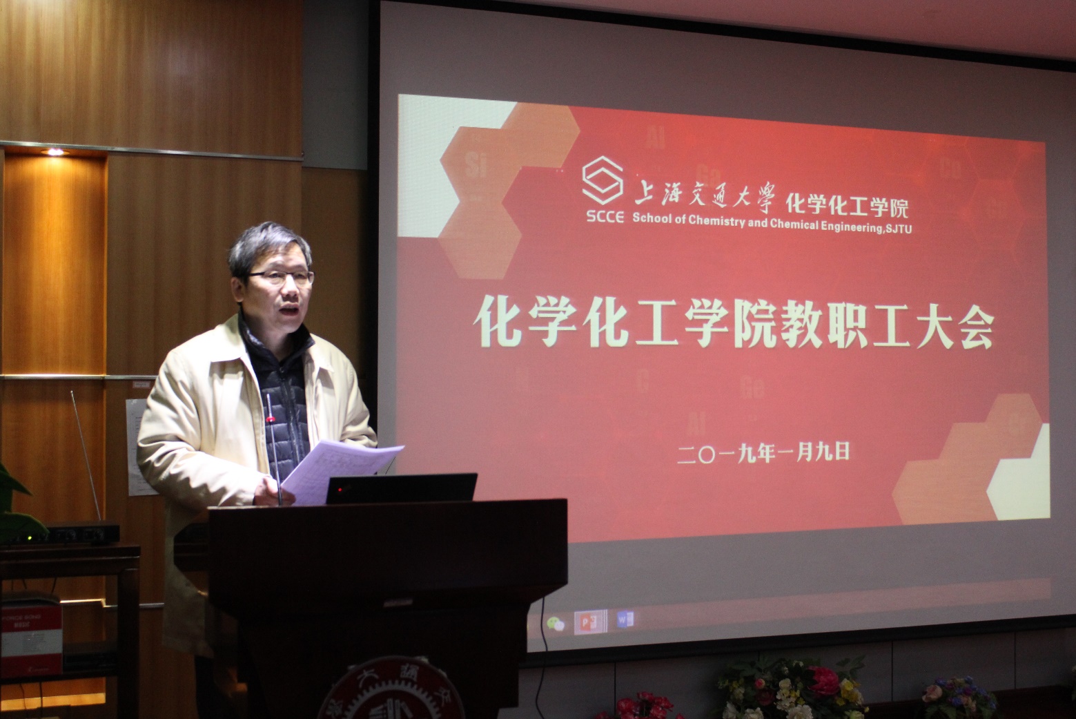 2019年1月9日上午,羞羞漫画 教职工大会暨五届三次教代会在化学楼A楼528演讲厅举行。校党委组织部副部长周鹏、校工会副主席戴宝印等部处领导出席了会议,化学院化工学院全体教师参加会议,会议由学院工会主席王新灵教授主持。
