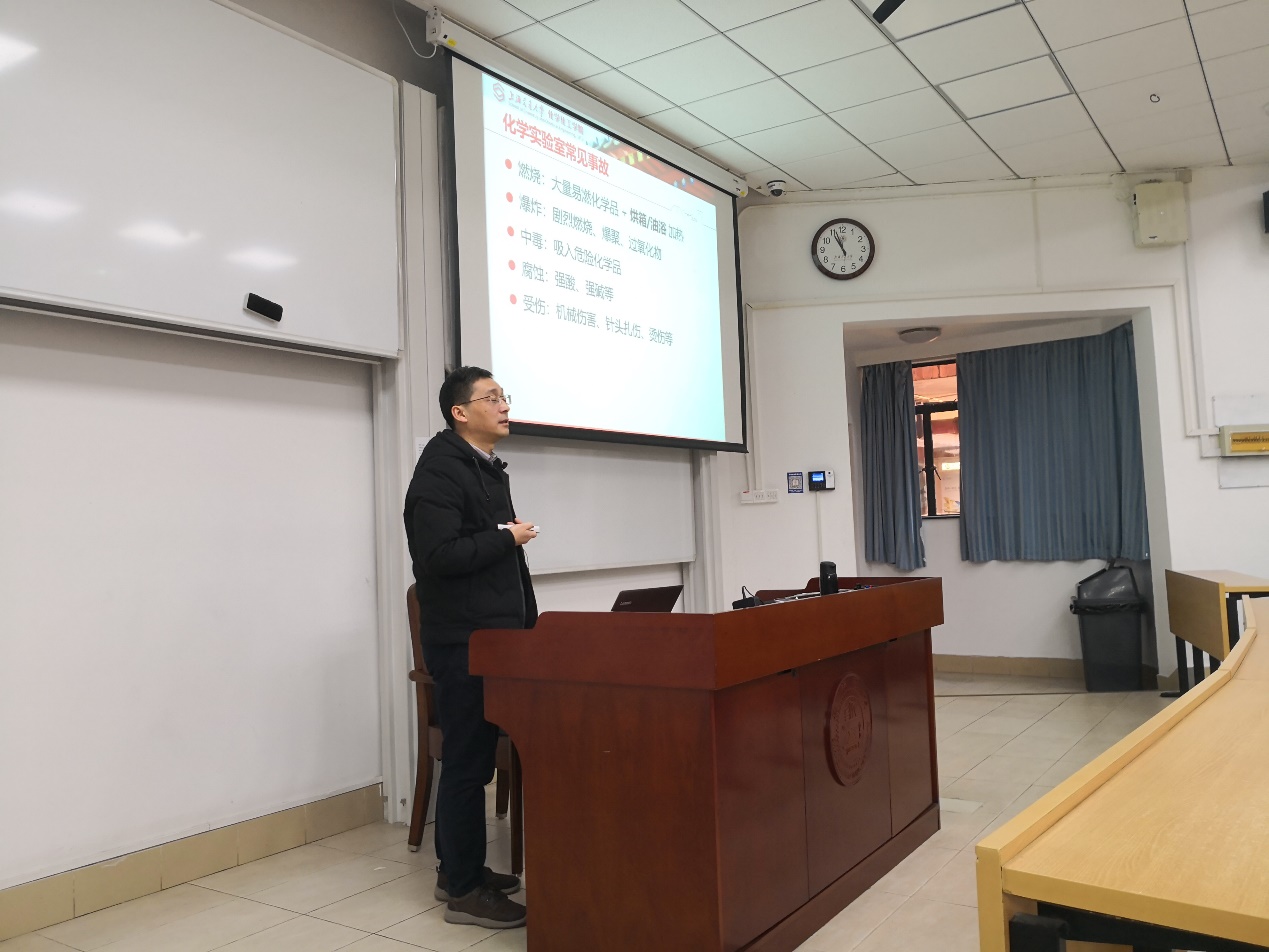 在检查排摸过程中发现的各种实验室安全隐患,再次强调了实验室安全隐患就在每个人的身边,必须高度重视,时刻排查。彭宗林通过解读学院实验室安全”扣分规则“,指出寒假期间尤其要重视实验过程中有专人值守,并且严格执行各项实验室安全准则不能松懈。