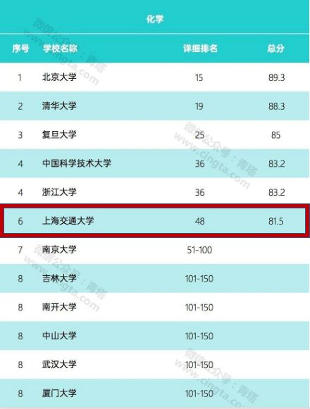 化学、化工学科居国内高校前列!化学专业进入全球前50!化工专业位居51-100!