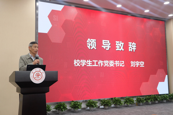 伴随着雄壮的国歌声,开班典礼正式拉开了帷幕。首先,校学生工作党委书记刘宇空老师致辞。他表示去年四院联合开展的首期“红色基因”培训班取得了较好的效果,学院联合教育培养模式将成为未来学校二级青马党校主要的培训模式。“红色基因”是中国共产党人的精神内核,是中华民族的精神纽带,他希望学员通过培训能端正自己的入党动机,不断提升自己的理论水平、学习理解党的方针政策,在实际生活中践行自己的理想信念,能够在心中种下一颗红色种子,从“红色基因”中汲取前进的力量!最后,他建议学员在入党的道路上要严于律己做表率、示范引领做榜样、知行合一做贡献,践行起年轻一代的使命和责任。