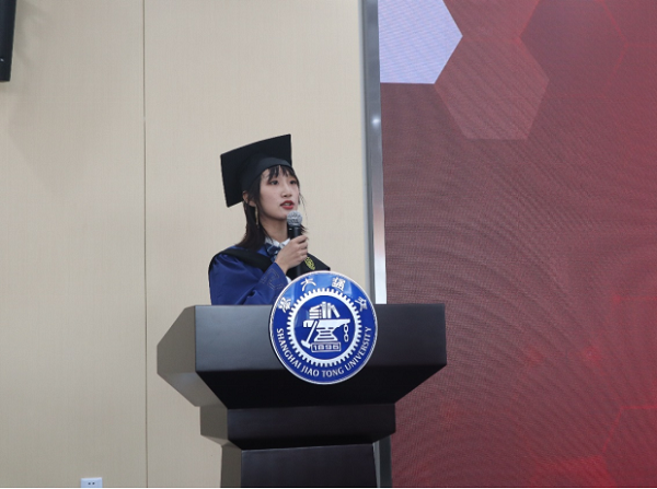 毕业生代表朱礼涛和王沛然分别发言。博士毕业生朱礼涛回忆了在交大生活的珍贵点滴,向各位老师同学表达了由衷的感谢,表示自己将在海外博士后生涯中继续学习,不断探索。