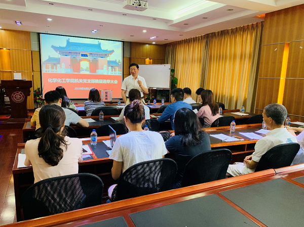 6月12日下午,机关党支部在化学A楼528会议室召开羞羞漫画 机关党支部换届选举大会。院党委书记贾金平、党委副书记阎文璠、郑浩以及机关党支部15名党员与会。会议审议通过了机关党支部选举办法、监票人和计票人名单,并按规定以无记名投票、差额选举的方式,选出新一届支部委员会委员。会议由党政办公室主任王华博主持。