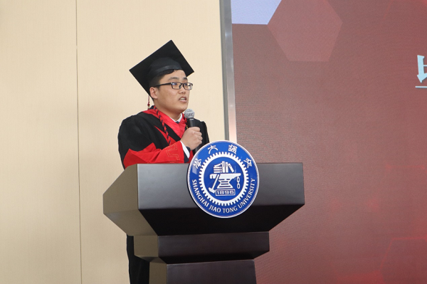 毕业生代表朱礼涛和王沛然分别发言。博士毕业生朱礼涛回忆了在交大生活的珍贵点滴,向各位老师同学表达了由衷的感谢,表示自己将在海外博士后生涯中继续学习,不断探索。